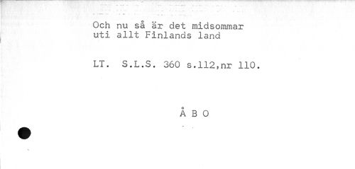 //// r— • r «•• t + : //// Och nu så är det midsommar uti allt Finlands land //// LT. S.L.S. 360 s.112,nr 110. //// ÅBO ////
