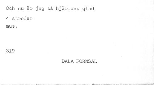 //// Och nu är jag så hjärtans glad //// 4 strofer mus. //// 319 //// DALA FORNSAL ////