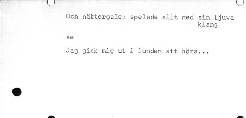 //// Och näktergalen spelade allt med sin ljuva //// klang //// se //// Jag gick mig ut i lunden att höra... ////