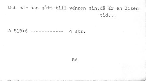 //// Och när han gått till vännen sin,då är en liten //// tid... //// A 515:6--- 4 str. //// RA ////