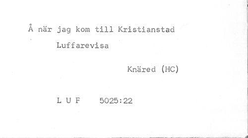 //// o //// A när jag kom till Kristianstad //// Luffarevisa //// Knäred (HC) L U F 5025:22 //// ... . . ... Ä ////
