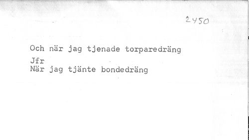 //// I //// i //// i //// Och när jag tjenade torparedräng Jfr //// När jag tjänte bondedräng //// % ////
