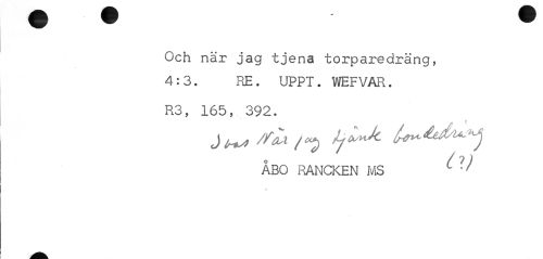 //// Och när jag tjena torparedräng, 4:3. RE. UPPT. WEFVAR. //// R3, 165, 392. //// ABO RANCKEN MS c 'f //// •fi ////