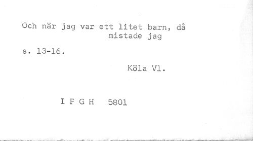 //// Och när jag var ett litet barn, då //// mistade jag //// s. 13-16. //// Köla VI. //// I F G H 5801 ////
