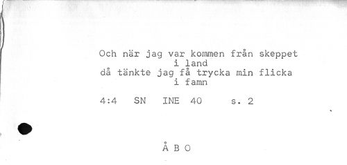 //// Och när jag var kommen från skeppet //// i land //// då tänkte jag få trycka min flicka //// i f amn //// 4:4 SN INE 40 s.2 //// o //// A B 0 ////