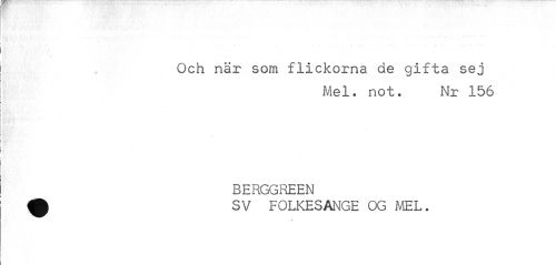 //// * //// Och när som flickorna de gifta sej //// Mel. not. Nr 156 //// BERGGREEN //// ^ SV FOLKESANGE OG MEL. //// « ////