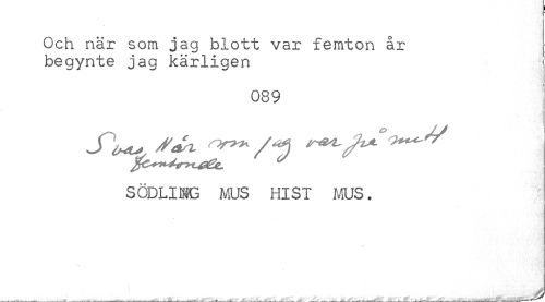 //// Och när som jag blott var femton år begynte jag kärligen //// 089 //// SÖDLI1G MUS HIST MUS. //// ---. ___ . - _ ___—. . ___... --___ ^ _ ___¦V-l ¦NlltL'-> iCl <Ml» ___.-- ////