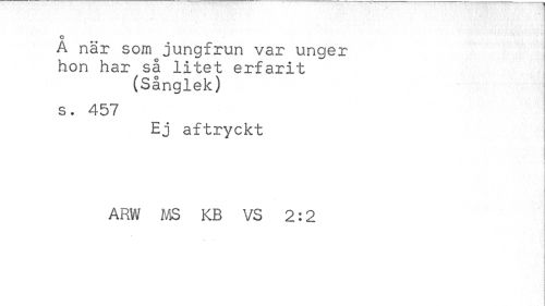 //// c //// A när som jungfrun var unger hon har så litet erfarit //// (Sånglek) //// s. 457 //// Ej aftryckt ARW MS KB VS 2:2 //// i //// ¦ //// | ////
