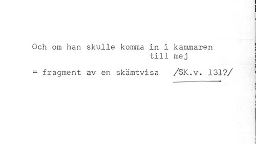 //// Och om han skulle komma in i kammaren //// till mej //// = fragment av en skämtvisa /SK.v. 131?/ //// ! ////