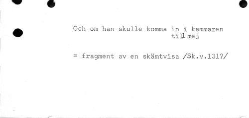 //// •Och om han skulle komma In i kammaren //// till mej //// = fragment av en skämtvisa /Sk.v.131?/ //// * ////