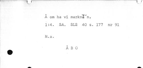 //// Å om ha vi markna'n, //// 1:4. SA. SLS 40 s. 177 nr 91 //// M. a. //// ÅBO ////