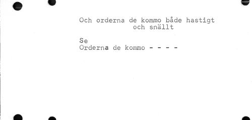 //// Och orderna de kommo både hastigt //// och snällt //// Se //// Orderna de kommo - - - - ////