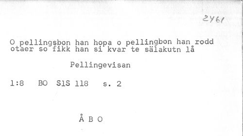 //// O pellingsbon han hopa o pellingbon han rodd otaer so fikk han si kvar te sälakutn lå //// Pellingevisan 1:8 BO SIS 118 s. 2 //// ÅBO ////