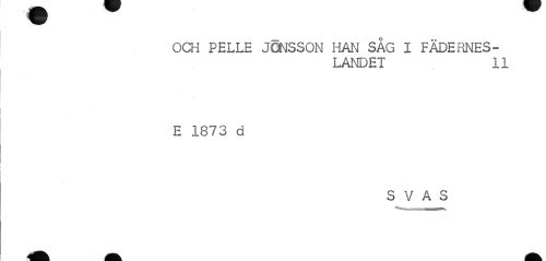 //// OCH PELLE JONSSON HAN SÅG X FÄDERNESLANDET 11 //// E 1873 d //// S V A S ////