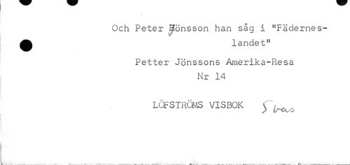 //// t //// Och Peter Hönsson han såg i "Fädernes-^ landet" //// Petter Jönssons Amerika-Resa //// Nr 14 //// LÖFSTRÖMS VISBOK ^ ^ ////