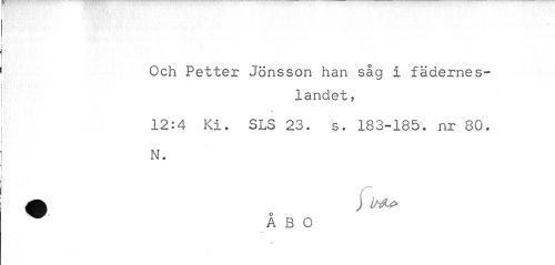 //// Och Petter Jönsson han såg i fäderneslandet, //// A //// 12:4 Ki. SLS 23. s. 183-185. nr 80. N. //// A j //// ÅBO //// \ ////