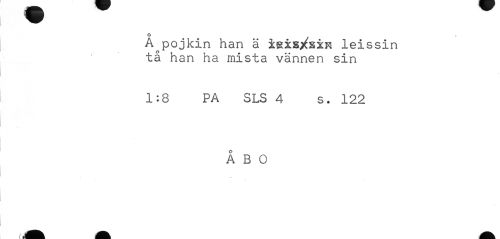 //// O t //// A pojkin han ä iesisxsacR leissin tå han ha mista vännen sin //// 1:8 PA SLS 4 s. 122 //// ÅBO ////