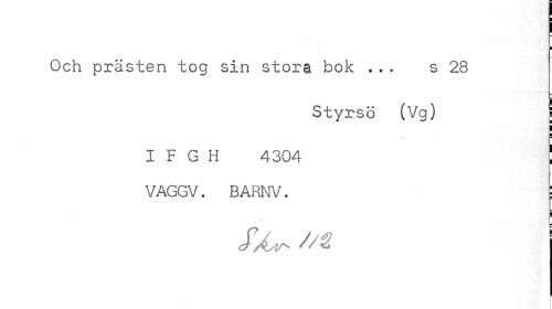 //// I //// Och prästen tog sin stora bok ... s 28 //// Styrsö (Vg) j //// I F G H 4304 j //// VAGGV. BARNV. | //// j //// fA^ //S //// r ////