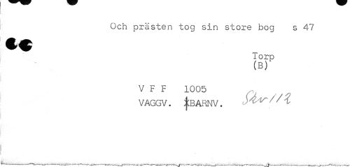 //// Och prästen tog sin store bog s 47 //// Torp (B) //// V F F 1005 VAGGV. ^BARNV. //// r ////