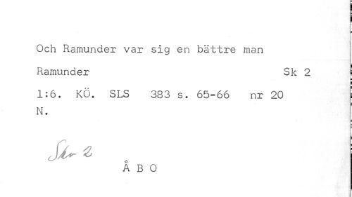 //// ¦ //// Och Ramunder var sig en bättre man //// Ramunder Sk 2 j //// 1:6. Kö. SLS 383 s. 65-66 nr 20 //// N. f //// i //// ÅBO ////