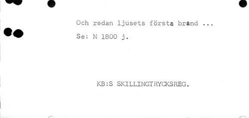 //// Och redan ljusets första brand ... Se: N 1800 j. //// KB:S SKILLINGTRYCKSREG. //// /--v. ////