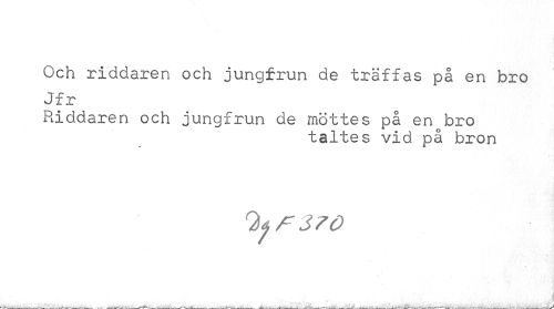 //// Och riddaren och jungfrun de träffas på en bro Jfr //// Riddaren och jungfrun de möttes på en bro //// taltes vid på bron //// 1)^370 //// i ////