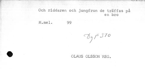 //// Och riddaren och jungfrun de träffas på //// en bro //// M.mel. 99 //// r 370 //// ^ OLAUS OLSSON REG. ////