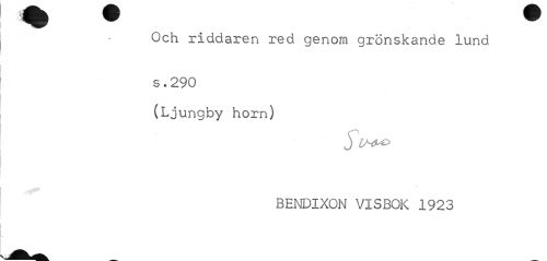 //// Och riddaren red genom grönskande lund s . 290 //// (Ljungby horn) //// BENDIXON VISBOK 1923 ////