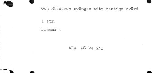 //// Och Riddaren svängde sitt rostiga svärd //// 1 str. Fragment //// ARW MS Vs 2:1 ////