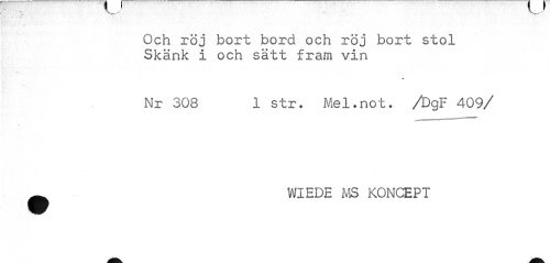 //// . //// Och röj bort bord och röj bort stol //// Skänk i och sätt fram vin //// v ' ^ ' ' //// * //// Nr 308 1 str. Mel.not. /DgF 409/ //// _ WIEDE MS KONCEPT ////