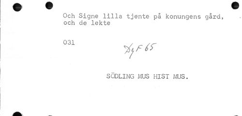 //// Och Signe lilla tjente på konungens gård, och de lekte //// 031 //// SODLING MUS HlST MUS. ////