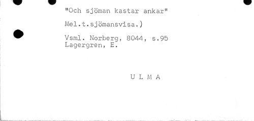 //// "Och sjöman kastar ankar" //// v //// Mel.t.sjömansvisa.) //// ^ Vsml. Norberg, 8044, s.95 //// Lagergren, E. //// U L M A ////