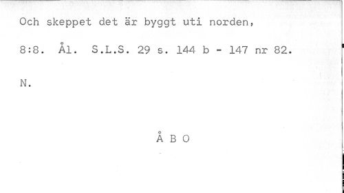 //// Och skeppet det är byggt uti norden, //// 8:8. Ål. S.L.S. 29 s. 144 b - 147 nr 82. ! //// N. //// ÅBO ////