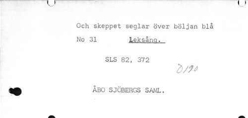//// X___' //// Och skeppet seglar över böljan blå No 31 leksång. //// SLS 82, 372 //// 2>/f* //// M ÅBO SJÖBERGS SAML . ////