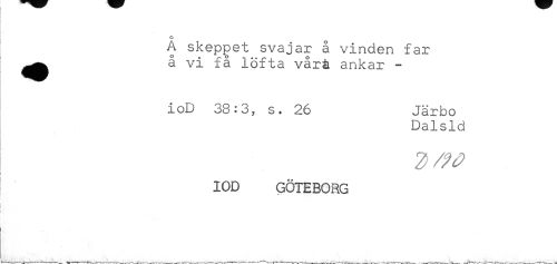 //// o //// A skeppet svajar å vinden far å vi få löfta vårå ankar - //// ioD 33:3, s. 26 Järbo //// Dalsld //// IOD GÖTEBORG ////