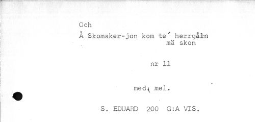//// Och //// 0 ? //// A Skomaker-jon kom te herrgåin //// mä skon //// nr 11 //// ^^ med^ mel. //// S. EDUARD 200 G:A VIS. ////