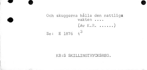 //// __Och skuggorna hålla den nattliga //// vakten ... //// (Av K.R...) //// Se: E 1876 t3 //// KB:S SKILLINGTRYCKSREG. ////