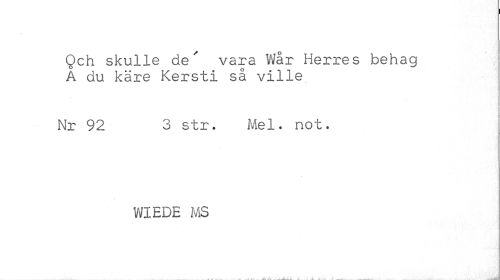 //// Qch skulle de' vara Wår Herres behag A du käre Kersti så ville //// Nr 92 3 str. Mel. not. //// WIEDE MS //// u. A . , « - v . . ////