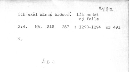 //// Och skål minaé brödert Låt modet //// ej falla //// 3:4. NA. SLS 367 s 1293-1294 nr 491 N. //// ÅBO ////