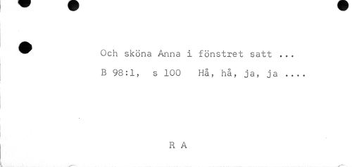 //// ^ Och sköna Anna i fönstret satt ... //// B 98:1, s 100 Hå, hå, ja, ja ... //// R A ////