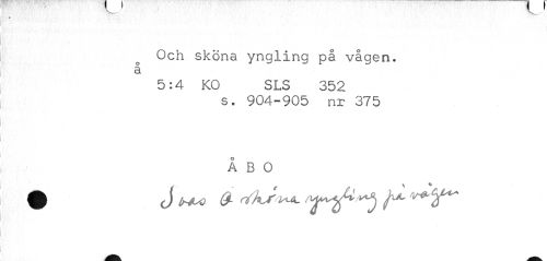 //// Och sköna yngling på vågen. //// å //// 5:4 KO SLS 352 //// s. 904-905 nr 375 //// ÅBO //// % Jmlo 0 JkJa**. ^f^ ////