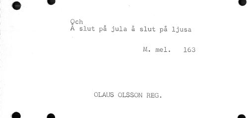 //// Och //// c //// A slut pä jula a slut pa ljusa //// M. mel. 163 //// OLAUS OLSSON REG. ////