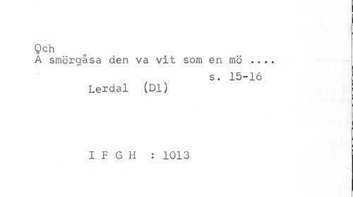//// I //// Qch //// A smörgasa den va vit som en mö ... //// s. 15-16 //// Lerdal (Dl) //// I F G H : 1013 ////