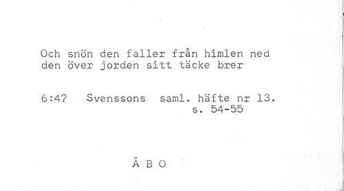 //// "V //// i! //// Och snön den faller från himlen ned den över jorden sitt täcke brer //// 6:4? Svenssons saml. häfte nr 13. //// s. 54-55 //// ÅBO ////