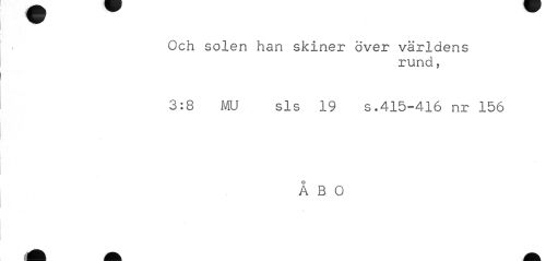 //// Och solen han skiner över världens //// rund, //// 3:8 MU sls 19 s.415-416 nr 156 //// ÅBO ////