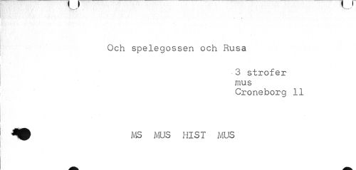 //// • I //// Och spelegossen och Rusa //// • 3 strofer mus //// Croneborg 11 //// MS MUS HIST MUS ////