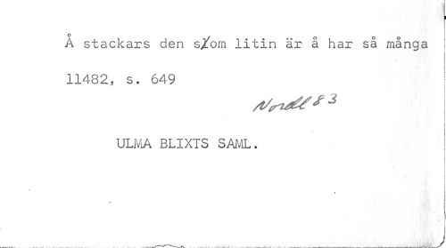 //// Å stackars den s/om litin är å har så många //// 11482, s. 649 - //// /l/r^*3 //// ULMA BLIXTS SAML. //// | //// i //// i //// * //// \ //// —. J ////