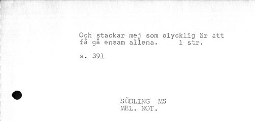 //// Och stackar mej som olycklig är att få gå ensam allena. 1 str. //// s. 391 //// SODLING MS MEL. NOT. ////