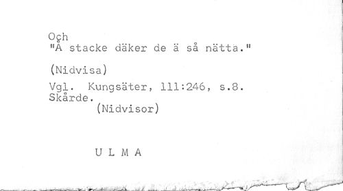 //// Oph //// nA stacke däker de ä sa natta." (Nidvisa) //// Vgl. Kungsäter? 111:246? s.8. Skårde? //// (Nidvisor) U L M A ////