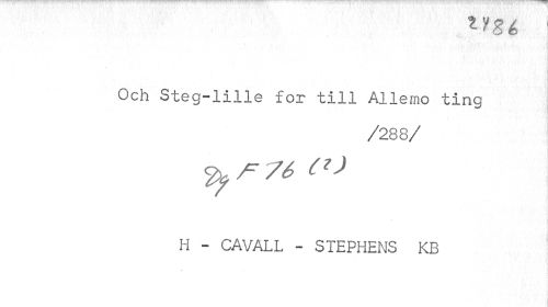 //// Och Steg-lille for till Allerno ting //// /288/ //// H - CAVALL - STEPHENS KB ////